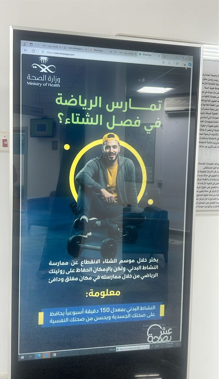 وايضغ فعّل قطاع ومستشفى البرك بالتجمع حملة "شتاء صحي"، من خلال تفعيل الشاشات الإلكترونية في صالات الانتظار في المستشفى وعدد من المراكز الصحية، إلى جانب توزيع عدد من البروشورات والاستاندات التوعوية للزوار والمراجعين، وقد استفاد منها أكثر من ٥٠٠ مستفيداً.